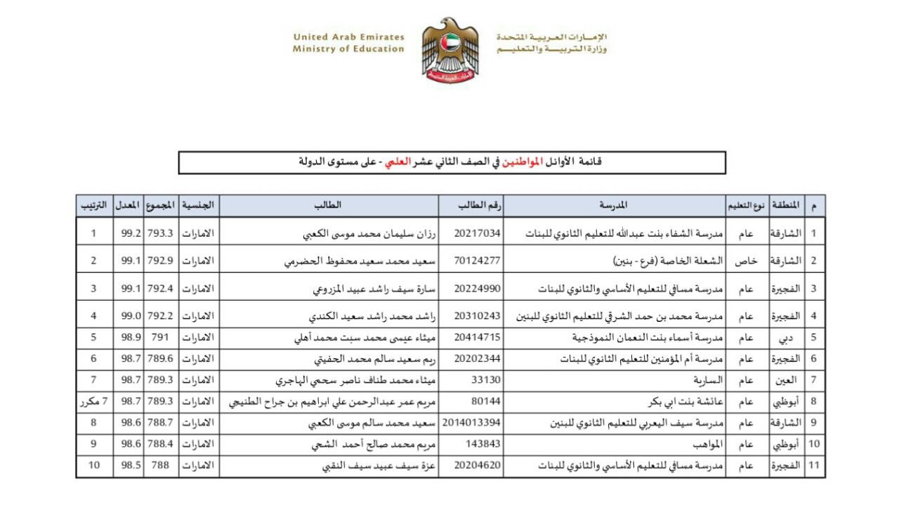أوائل الثانوية العامة 2021 في الامارات / Ø§ÙØ§Ø¦Ù Ø§ÙØ«Ø§ÙÙÙØ© Ø§ÙØ¹Ø§Ù