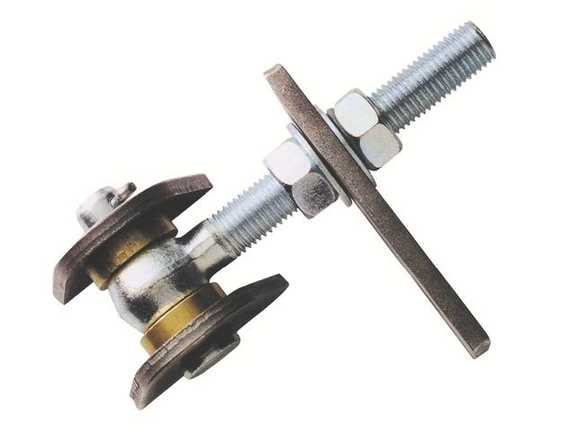 Régulateur de pente à rotule pour portail acier.